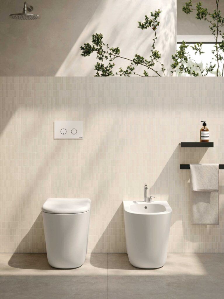La ceramica come elemento di materia pura, eterea e igienica rimane inalterata nel tempo e viene riletta con precisi studi di ergonomia e stile, con colorazioni contemporanee opache o nel semplice bianco lucido. Sempre presente nelle linee di sanitari sospesi o a terra, piatti doccia e lavabi di svariate forme e dimensioni, trova impiego anche per mensole, lampade o accessori bagno.